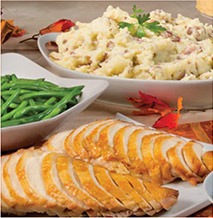 In this carryout, there are manyother flavors to enjoy as wellas turkey. From garlic mashed potatoes and Italian sausage stuffing to green beans andcranberry sauce.