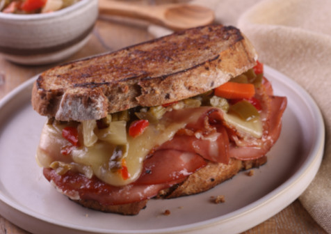 - Assemble sandwich by placing slices of fried mortadella on bread and topping meat and cheese with giardiniera. Place second slice of bread on giardiniera and serve.