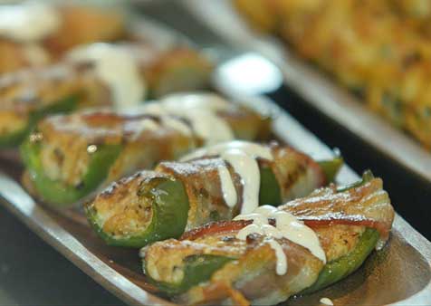 3. Wrap bacon around filled jalapeño and secure with toothpick