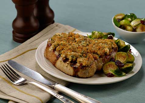 - Top each chop with gorgonzola patty; place under broiler until golden brown.