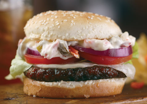7. Build burgers: bottom bun, patty, lettuce, tomato, onion, a generous amount of giardiniera, mayo, top bun.