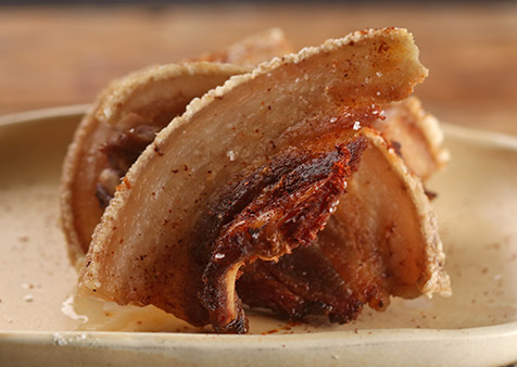 - Remove belly, brushing off any stuck peppercorns or cloves, and place on rack, skin-side up.