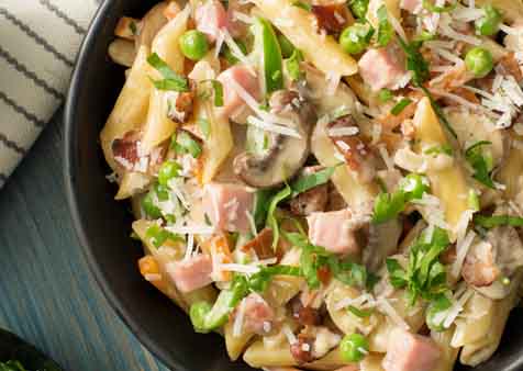 - Stir cooked pasta, tomatoes and green onions into pork mixture. Toss with cheese sauce before serving.