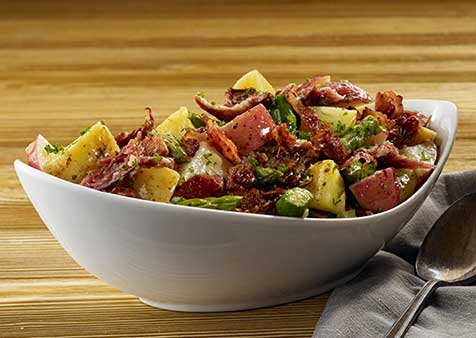 - Combine meat, potatoes, asparagus, celery, and parsley in a large serving bowl.