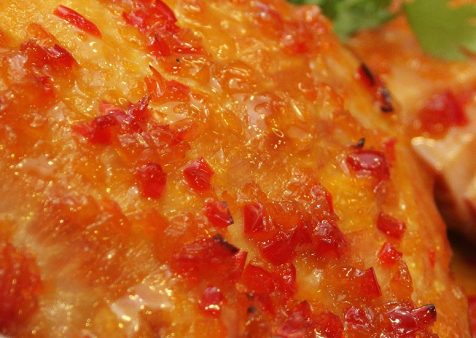1. In a medium sauce pot, melt butter and add onions or shallots. Sauté to a golden color before adding peppers and salt. Continue to sauté to a deeper golden brown before adding orange juice. Bring to a boil, then reduce to a simmer. Reduce by ¾ to a syrupy glaze. Add more orange juice as needed.