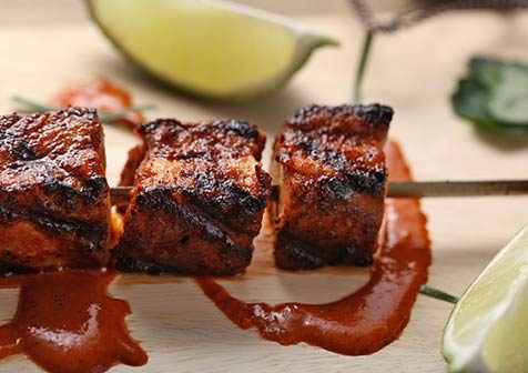 9. Marinate pork belly skewers in remaining Anticuchera Sauce for up to 1 day in advance before grilling. Grill until marked and internal temperature reaches 165°F.
