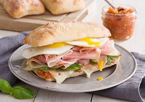 3. Place fried eggs on top of cheese-prosciutto and add top half to sandwich.