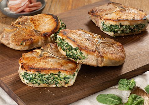 2. Cut 2 1/2-inch deep pocket in side of each pork chop. Stuff with prosciutto mixture. Season outside of chops as desired with Italian seasoning, salt and pepper.