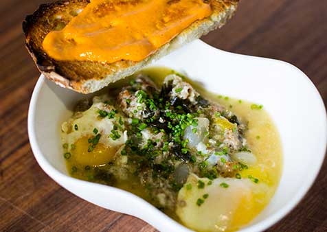 - Drizzle with Chorizo Aioli and add chives for garnish.