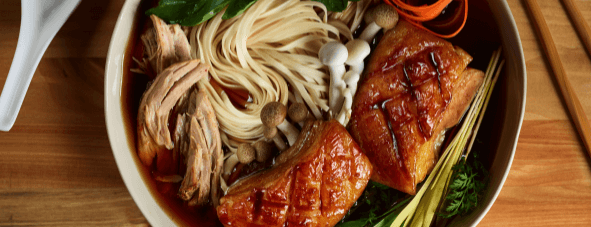 A Vietnamese soup consisting of broth, rice noodles, herbs and meat. A popular street food in Vietnam.