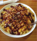 BBQ Pork Mac is a blend of Wisconsin cheeses, slow-braised pork and crispy jalapeños, and topped with a bbq sauce. The dish is creamy, savory, and hearty goodness.