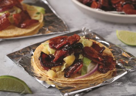 7. Top with bacon mixture and Pineapple Slaw.