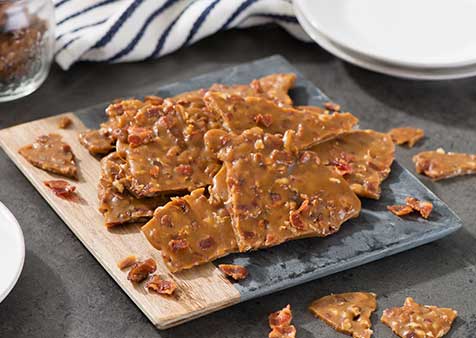 4. Remove pan from heat; stir in vanilla, baking soda, and bacon-pecan mixture. Quickly pour candy onto baking sheet, spreading to make thin. Cool completely before breaking into pieces to serve.