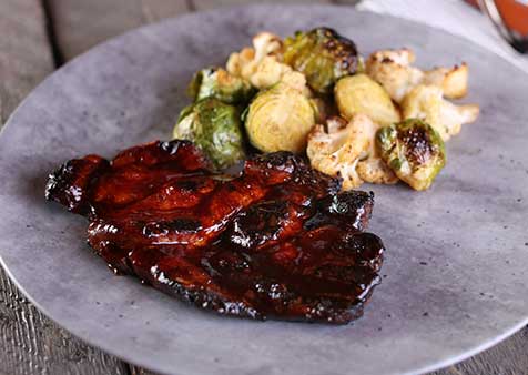 1. Slice four ¾-inch-thick pork steaks from boneless pork butt.