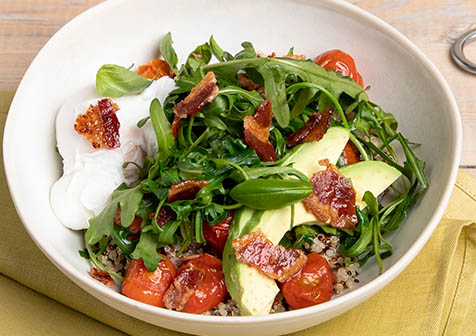 4. Clean and peel lettuce leaves apart and place into 2 bowls. Arrange into a cupped landing space for the quinoa.