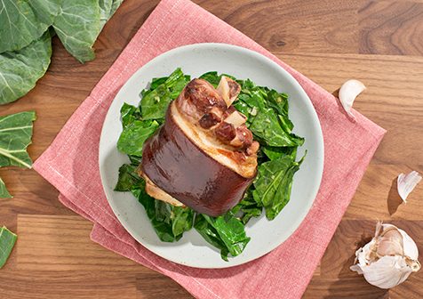 5. To serve, spoon collards onto plates. Top with ham hock and drizzle with balsamic vinegar to taste.