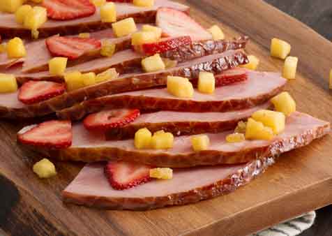 - To serve, ladle 4 ounces salsa over each serving of sliced ham.