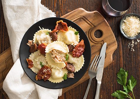 • Pork filled ravioli, cooked al dente