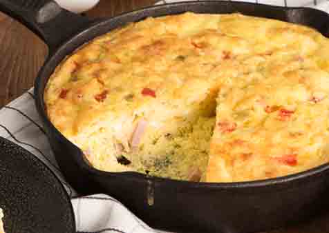 - Beat together eggs, biscuit mix and milk. Stir in remaining ingredients.