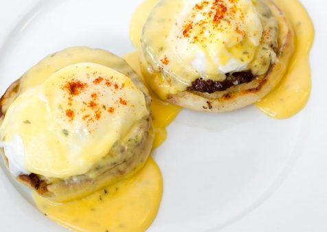 - Poach eggs in vinegar-water mixture to desired doneness.