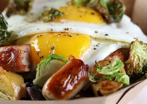 - Top with Hot Sauce Aioli, fried Brussels Sprout leaves, and sunny-side-up eggs.