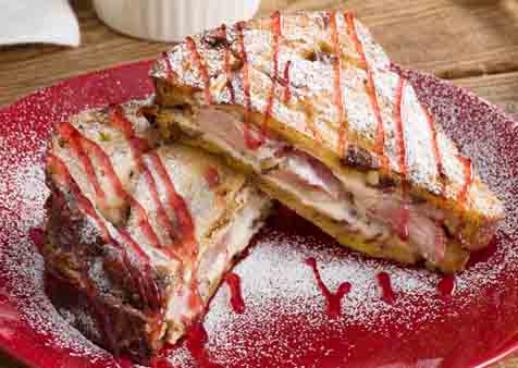 4. Remove toothpicks and slice sandwich into quarters. Top with powdered sugar and serve.