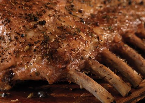 Slice the roast between the rib bones. Serve drizzled with the pan juices, and with the cauliflower and sauce on the side.