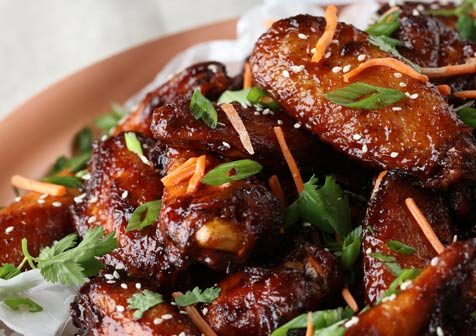 3. Remove wings from fryer and drain. Preheat oven to 350°F. Toss in hoisin sauce and place in oven for 5 minutes, or until sauce begins to caramelize on chicken.