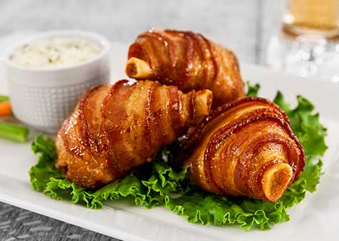 3. Place wings on sheet pan; heat in oven for 20 minutes or bacon is crisp and wings reach an internal temperature of 165°F.