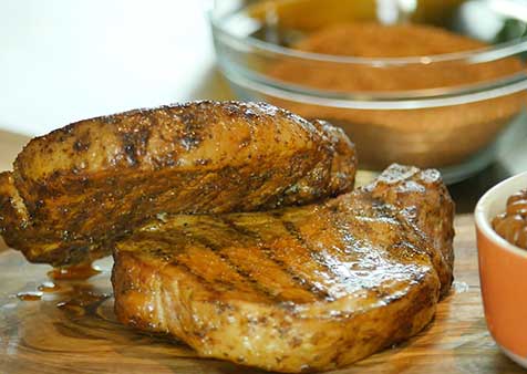2. Season pork chops generously with rub, cover and refrigerate 1 hour.