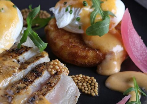 - Ladle 2 oz. of Tabasco Hollandaise over eggs.