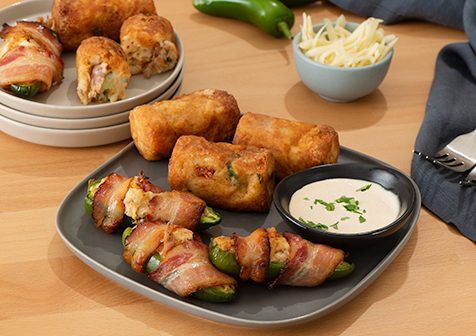 Pulled Pork and Bacon Wrapped Jalapeños with Pulled Pork BBQ Tater Tots
