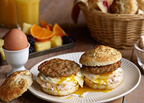 4. To build sandwich: Slice biscuit in half. On heel layer 2 tablespoons of Cheddar Pecan Spread, fried egg, Spicy Sausage Patty; top with crown of biscuit. Serve.